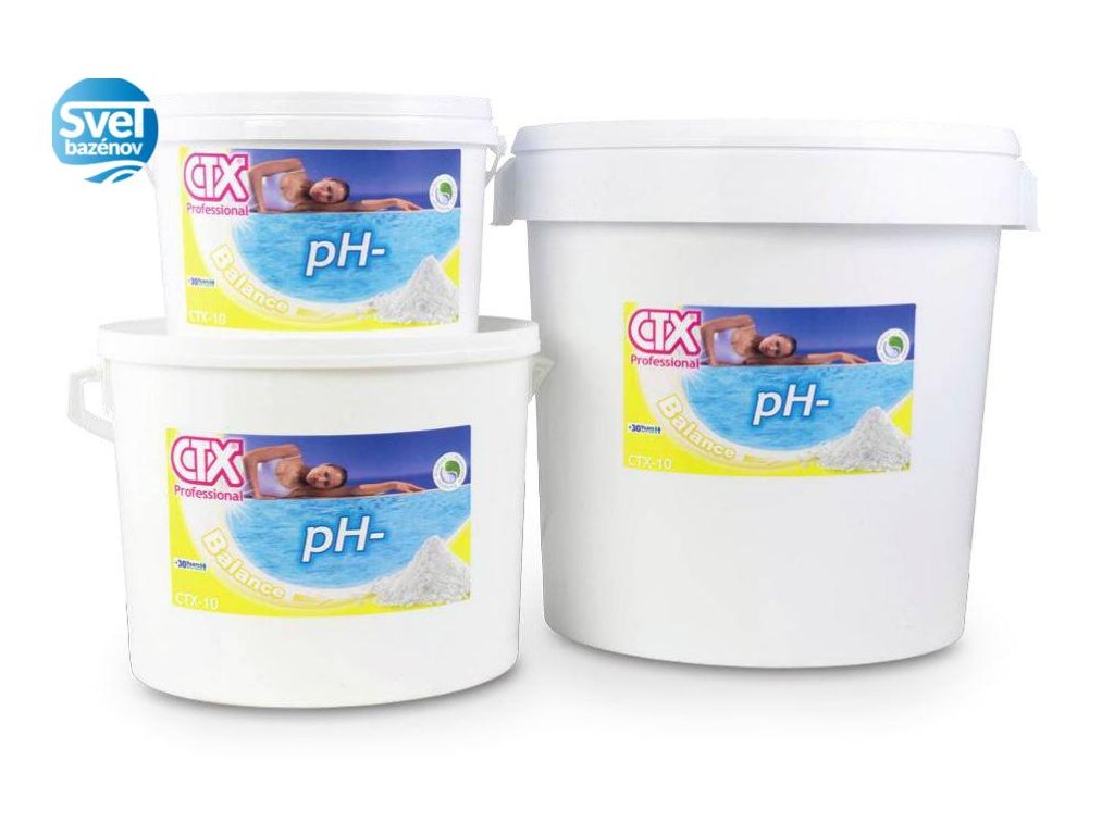 1,5kg CTX-10 zníži pH vo 100m3 vody o 0,2. Toto dávkovanie je iba orientačné. Presné dávkovanie je závislé od prevádzkových podmienok bazéna.
